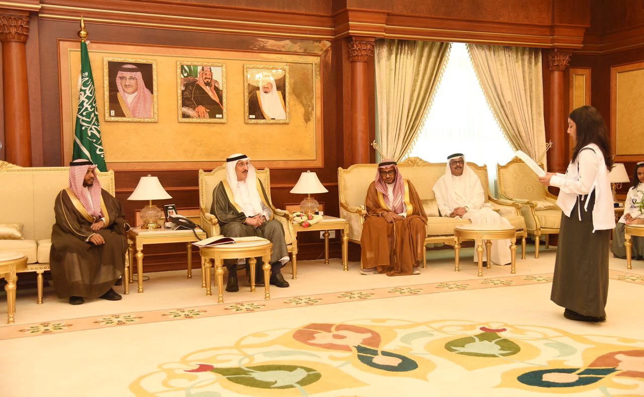 استقبل صاحب السمو الملكي الأمير محمد بن ناصر، أمير منطقة جازان بمكتبه في ديوان الإمارة ظهر اليوم المدير العام للتعليم بمنطقة جازان عيسى بن أحمد الحكمي وعددًا من طالبات مدارس جازان الأهلية، ممن شاركن ضمن برنامج “عيش السعودية ” مؤخرًا بالعاصمة الرياض.