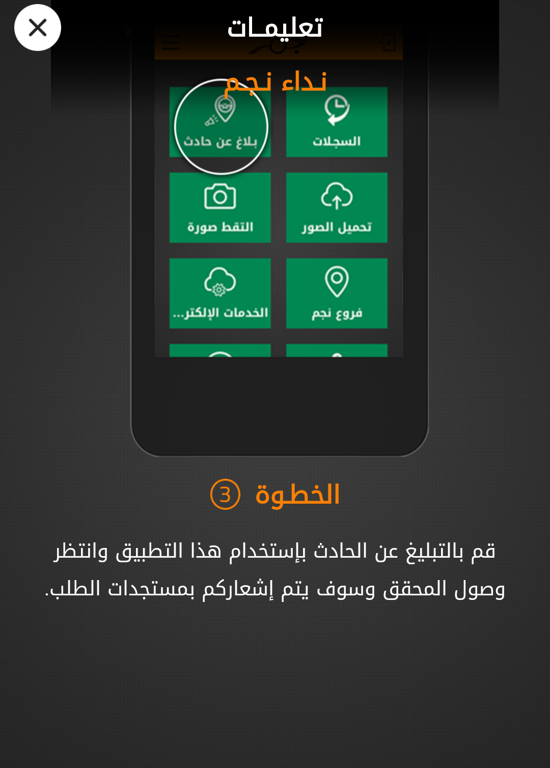 وتشرح “المواطن“، من خلال هذا التقرير، بالصور، آلية التبليغ عن الحوادث المرورية عن طريق التطبيق، حيث يمكن تصوير الحادث المروري من قبل أطراف الحادث، ليستطيع رجل المرور أو موظف شركة نجم التقييم.
