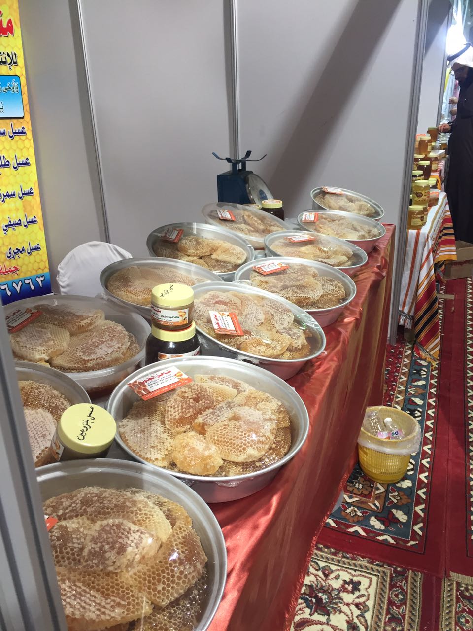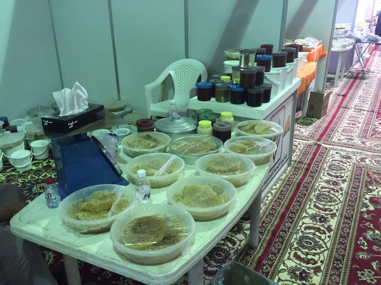 وشهد المهرجان عرض جميع أنواع العسل وانتشرت موائد العسل في جنبات وأركان المعرض، وسط إقبال من المتسوقين والمتنزهين.
