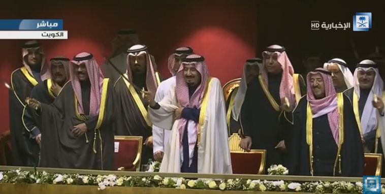 شارك خادم الحرمين الشريفين الملك سلمان بن عبدالعزيز في أداء العرضة، في الحفل الذي أقامته وزارة الإعلام الكويتية بمناسبة زيارة الملك للكويت.