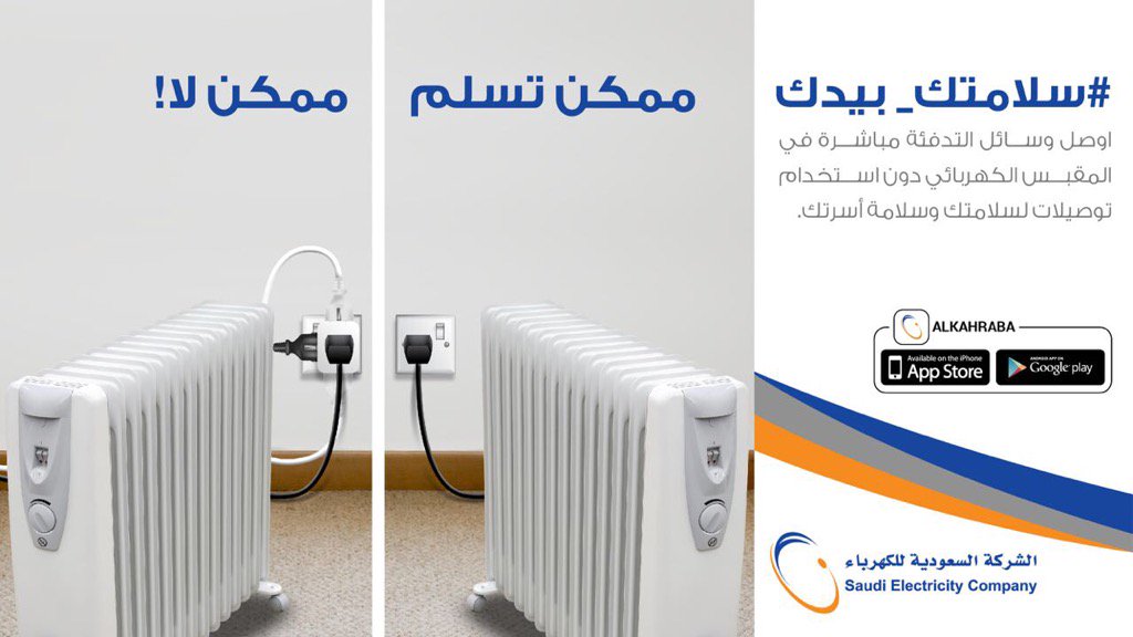 حذّرت الشركة السعودية للكهرباء من مخاطر توصيل وسائل التدفئة عبر توصيلاتٍ إضافية إلى مقبس الكهرباء، مؤكدةً أن ذلك قد يؤدّي إلى حدوث حرائق.