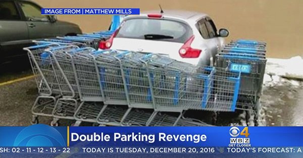 أخطأ فنال العقوبة، حيث أوقف سائق سيارته في موقفٍ مخصص لعربات المعاقين في مرأب سيارات مركز تجاري، لينال عقوبة على ما فعل بطريقةٍ ذكية، حيث حاصر أحد عمال المرأب سيارته بمجموعةٍ من عربات التسوُّق لمنعه من إخراج سيارته من المكان.