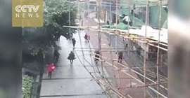 شاهد.. ثوانٍ مروعة لانهيار سقّالة تحمل 3 عمال