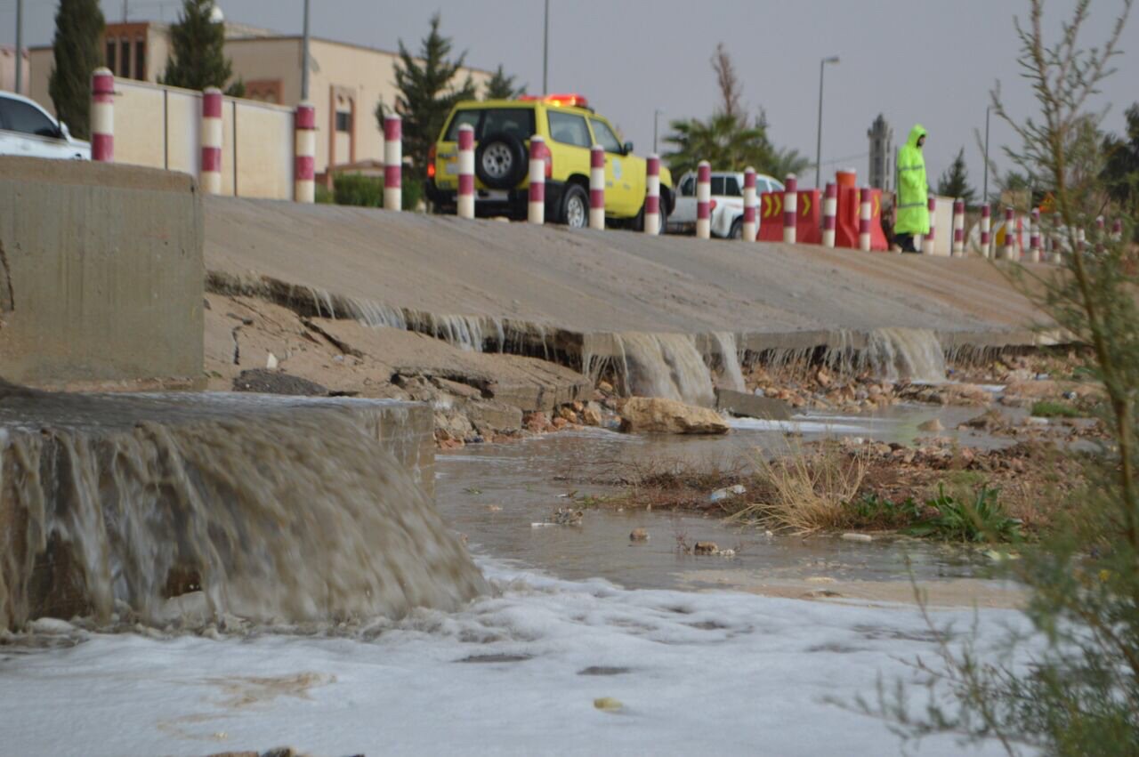 كما أعلن الدفاع المدني محافظة رفحاء توزيع آلياته عند بعض الأماكن تحسبًا لأي خطر لاسمح الله.