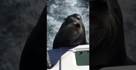 شاهد.. كلب البحر يقتحم قارب سريع بحثًا عن السمك