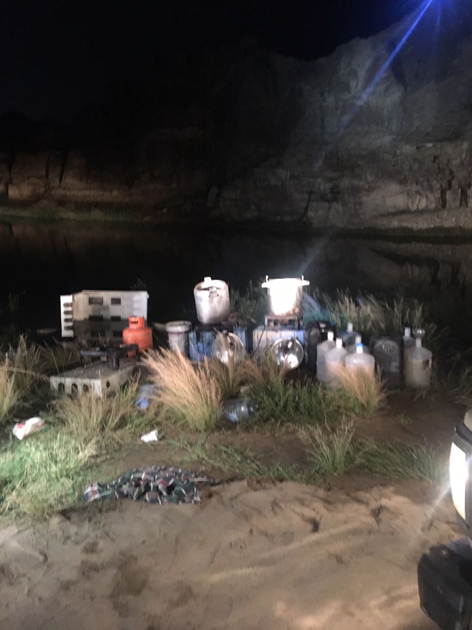 حيث تمكن رجال اﻷمن بشرطة محافظة الدرب في العملية اﻷولى من رصد شخصين من الجنسية اﻹفريقية يقومان بعمليات مشبوهة فتم عمل كمين أمني لهم وعند استشعارهم لرجال اﻷمن بادروا بإطلاق النار فتم الرد عليهم بالمثل ما أسفر عن إصابة أحدهم واستسلام الآخر، وعند القيام بمسح أمني لموقع تواجدهم عثر على مصنع خمور متكامل به 60 جركل مليئة بمادة العرق المسكر جاهزة ومعدة للترويج.