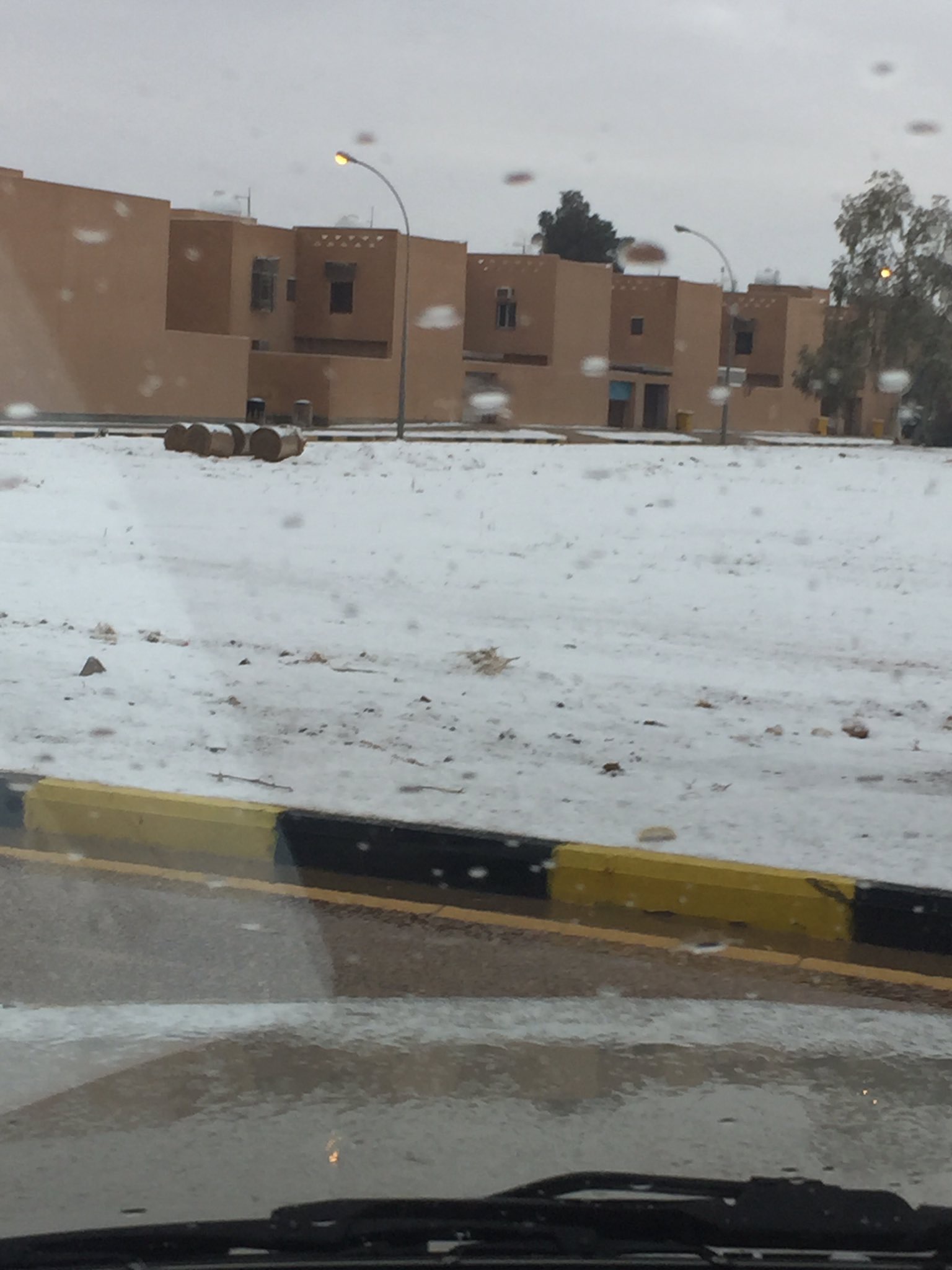 واكتست مدينة عرعر وضواحيها في ساعات الفجر الأولى بالوشاح الأبيض ليخرج عدد كبير من الأهالي للاستمتاع في مشاهدة الضيف الابيض والتقاط الصور التذكارية .