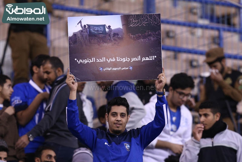 وحرصت الجماهير المتواجدة في المدرجات على رفع لافتات دعاء ومساندة لجنود القوات المسلحة المتواجدة في الحد الجنوبي، ولم يمتلئ ملعب الدرة حتى الآن، قبل دقائق من إطلاقة اللقاء، وظهرت مدرجات الهلال ممتلئة بصور أكبر من المدرجات المخصصة لجماهير النصر.