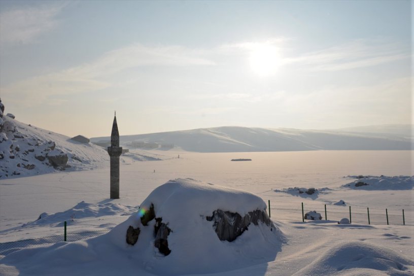 تجذب “مأذنة الثلج” في ولاية أغري شرقي تركيا، فضول زوار الولاية وعدسات محبي التصوير. حيث تعود المأذنة إلى مسجد قرية “باش شاويش” في الولاية، الذي غُمر مع معظم منازل القرية تحت مياه بحيرة سد “يازيجي”.
