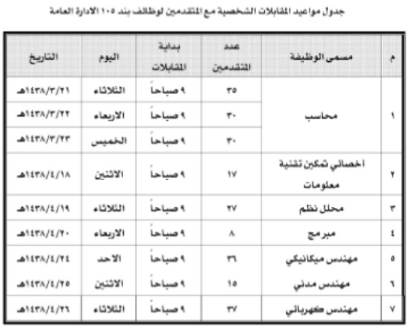 أعلنت المؤسسة العامة للحبوب، عن أسماء المرشحين مبدئيًّا لدخول المقابلة الشخصية، والبالغ عددهم (235) مرشحًا على الوظائف التي أعلنت عنها سابقًا، على (البند 105 ـ بند الرواتب المقطوعة)، في الإدارة العامة بالرياض، للوظائف التالية: “مهندس ميكانيكي – مهندس مدني – مهندس كهربائي – محاسب – أخصائي تمكين تقنية معلومات – محلل نظم – مبرمج”.