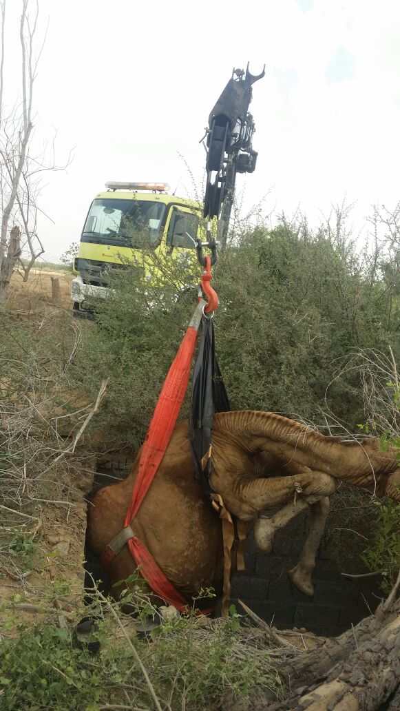 أنقذت فرق الدفاع المدني، بمحافظة أبو عريش، صباح اليوم، الجمعة، ناقة سقطت داخل خزّان صرف صحي مهجور بقرية الخضراء الشمالية.