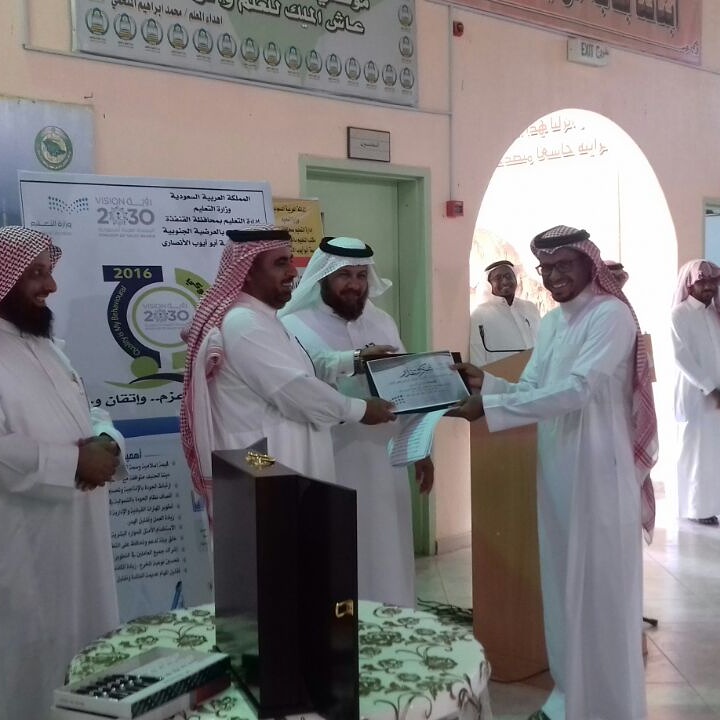 وقام بتكريم الطلاب زهير الشمراني قائد المدرسة، وبحضور المشرف التربوي في مكتب التعليم بالعرضية الجنوبية علي حافظ القرني ومنسوبي المدرسة، حيث قُدمت لهم الهدايا ، وشهادات شكر وتقدير على تميزهم وتفوقهم.