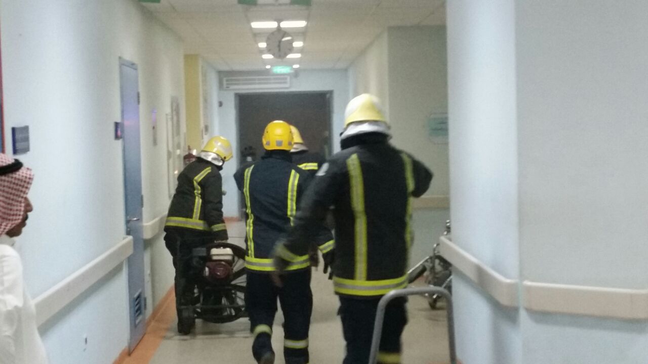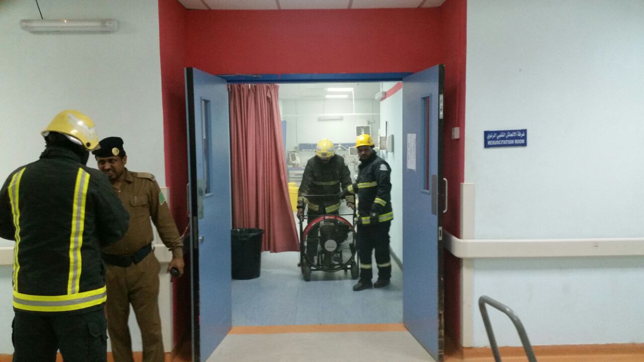 وباشرت فرق الدفاع المدني موقع الحريق، وقامت باخماده وطرد الدخان من المبنى، بالإضافة إلى إخلاء الطاقم الطبي من المبنى، حيث لم ينتج عن الحادثة أي إصابات أو فيات.