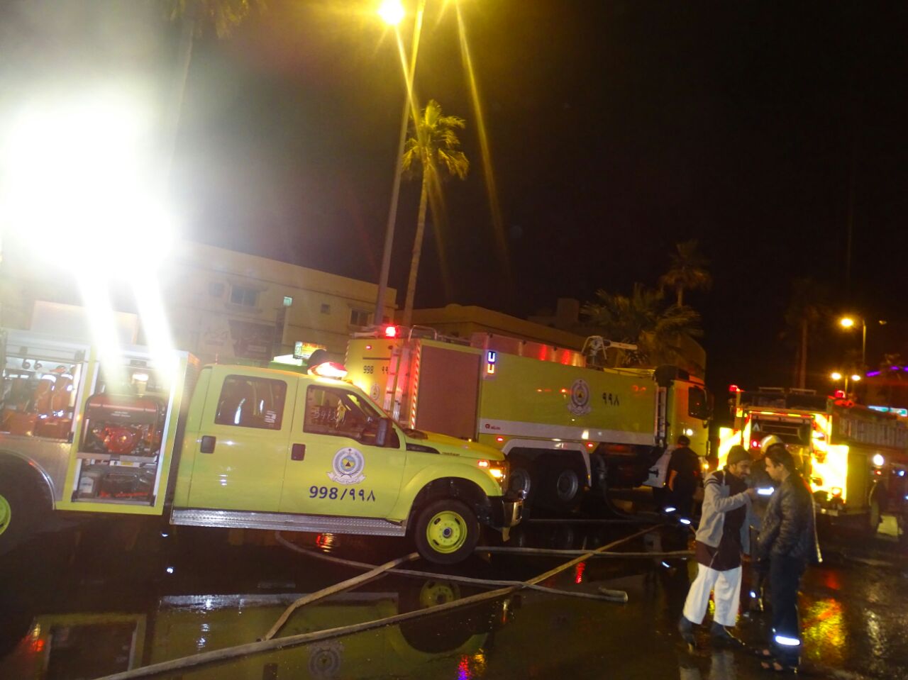 باشرت فرق الدفاع المدني، بالخفجي، مساء أمس ، الأحد، حريق شقة بالدور الثالث بحي المحمدية.