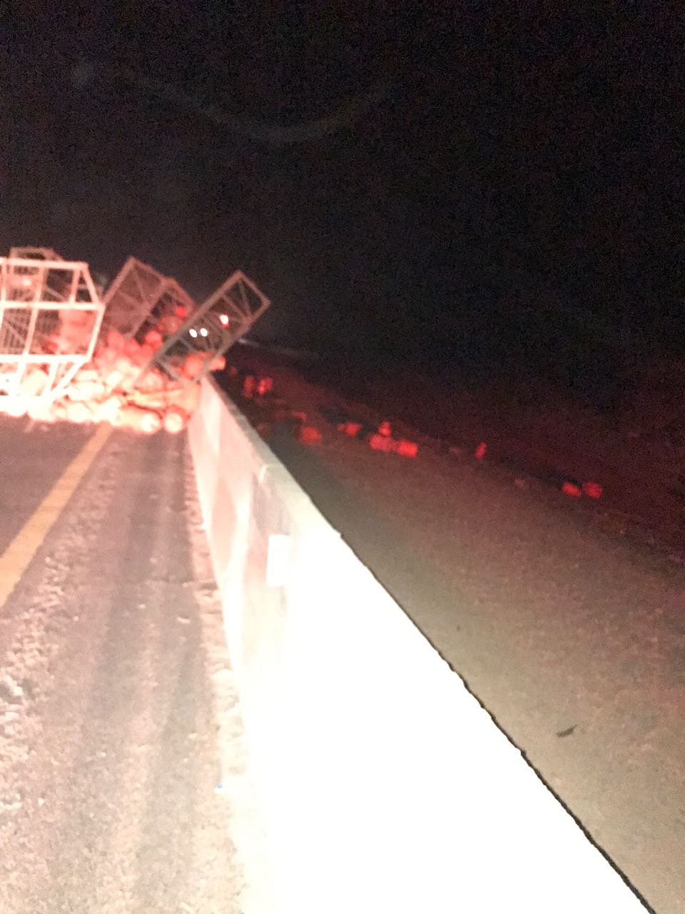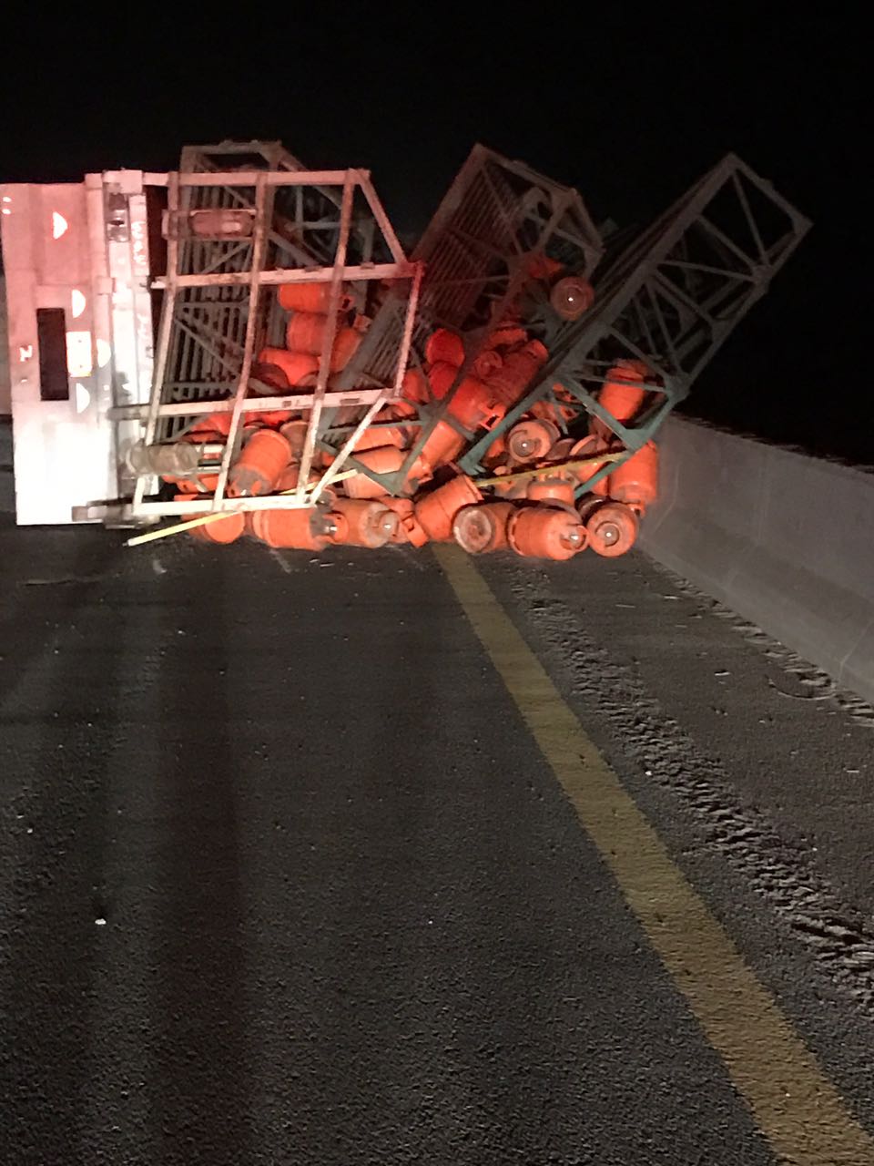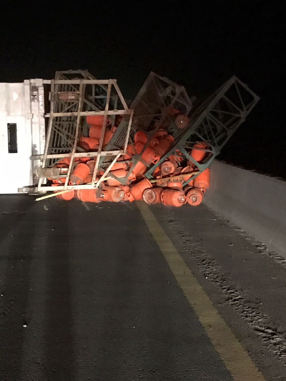 وأضاف: “أدى ذلك إلى سقوط كامل الحمولة على جانبي الطريق، وكذلك توقّف شاحنة أخرى خلفها تحمل العدد نفسه من الحمولة، وتساقط بعض من أسطوانات الغاز التي تحملها”.