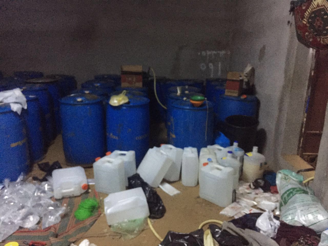 وشهدت العملية اﻷمنية الرابعة، التي نفذها رجال اﻷمن بشرطة محافظة أبو عريش، ضبط مصنع متكامل للخمور يديره مجموعة من اﻷفارقة، عثر به على 40 برميلاً من العرق المسكر جاهزة للتعبئة والترويج.