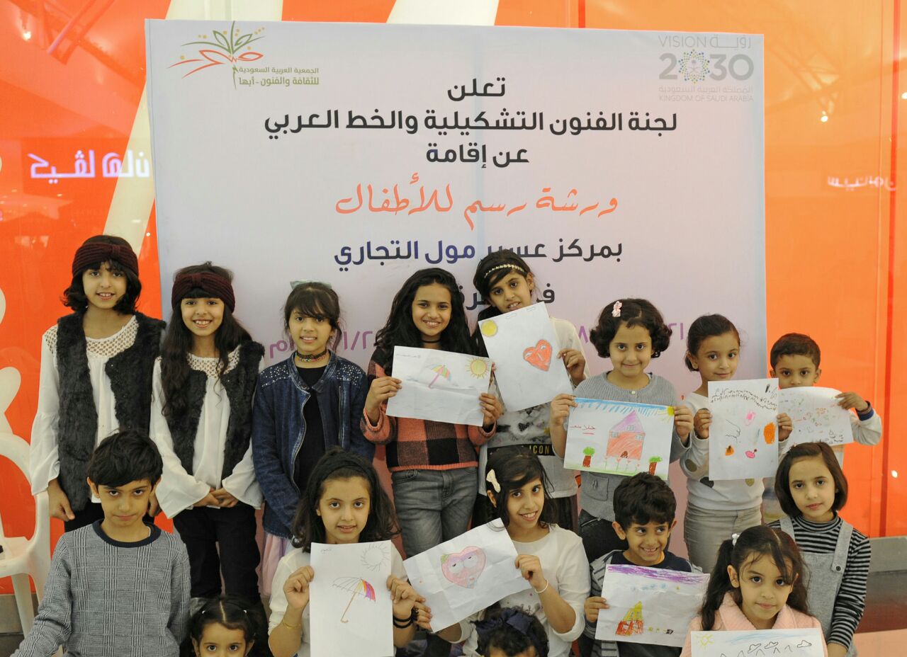 اختتمت جمعية الثقافة والفنون بأبها ممثلة في لجنة الفنون التشكيلية والخط العربي مساء أمس ” ورشة رسم للأطفال ” بمركز عسير مول.