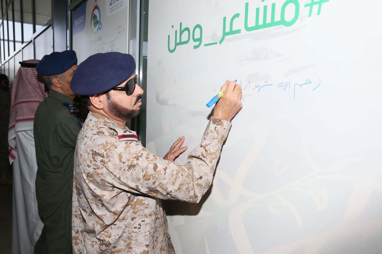 وتم تدشين الجدارية من قبل جميع القيادات العسكرية والأمنية بمحافظة الطائف يتقدمهم قائد المنطقة اللواء ركن فارس العمري وقائد قاعدة الملك فهد الجوية اللواء ركن طيار عبداللطيف الشريم ومدير شرطة الطائف العميد فهد العتيبي.