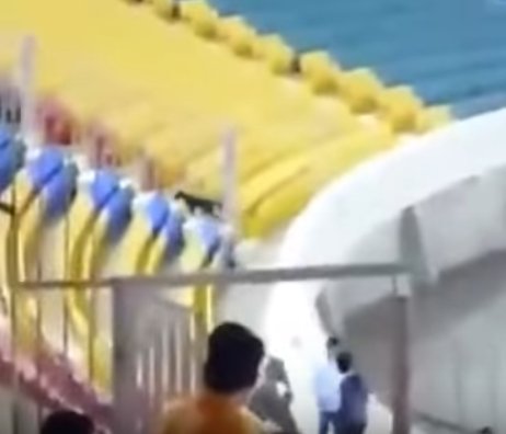 وتسبب الكلب في حالة من الهلع بين الجماهير قبل أن يتمكن أحد الحاضرين من السيطرة عليه وإخراجه.