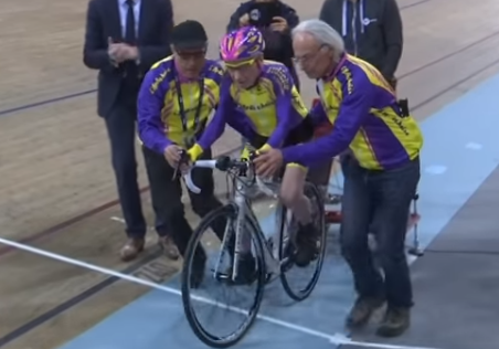 شاهد.. مسن بعمر 105 أعوام يقطع بدراجته 22.5 كم خلال ساعة في باريس