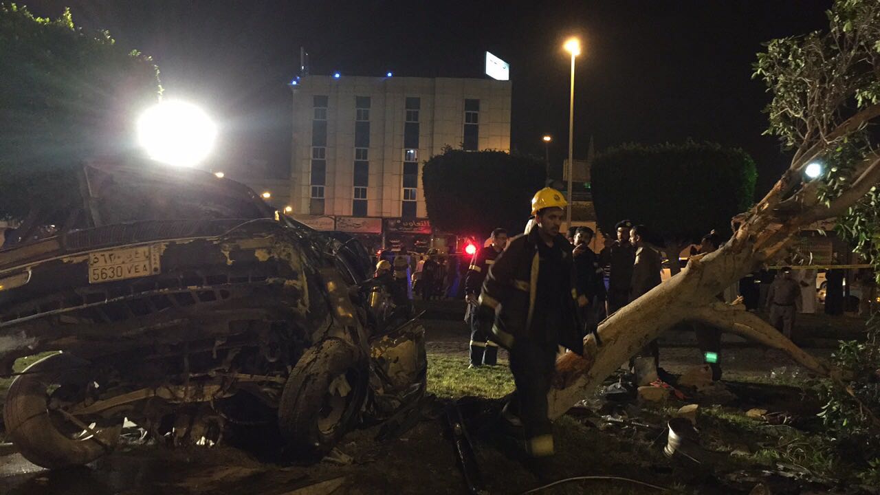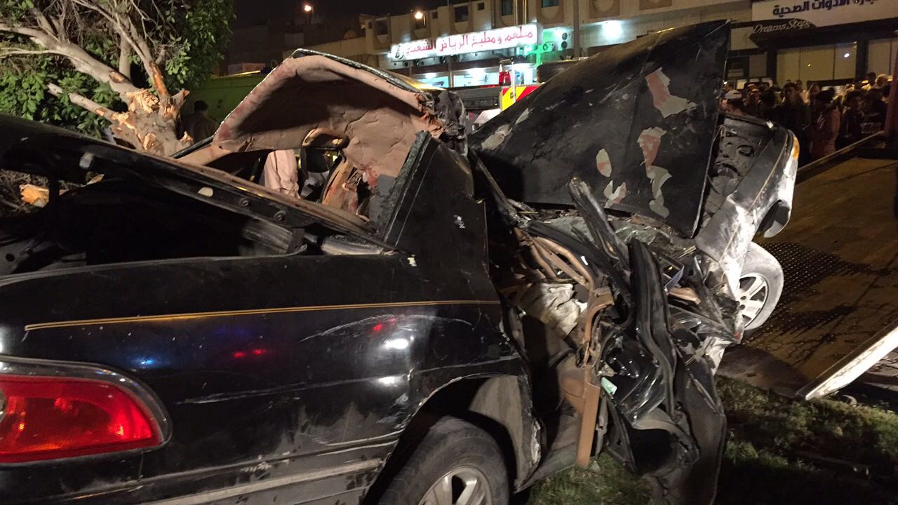 او تحركة امام السيارة او السيارة ذهبت الى الشجرة ؟ يا جماعة الخير التهور واللا مبالاة في السرعة وقد