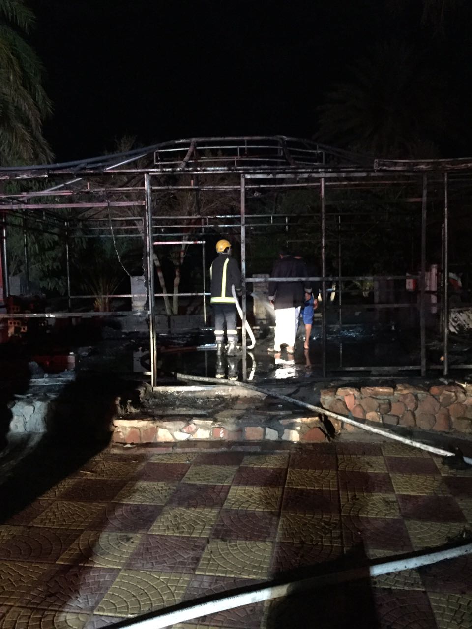 وأضاف: “تم توجيه فرق الدفاع المدني للموقع، حيث تمّت محاصرة الحريق قبل انتشاره بباقي المزرعة، فيما نتج عن الحادث احتراق بيت شعر بجميع محتوياته داخل المزرعة، كما امتد الحريق إلى 3 من النخل المثمر، وتم إخماد الحريق بدون إصابات -ولله الحمد-، وتشير التحقيقات الأولية للحادث إلى أن سبب الحريقهو التماس كهربائي”.