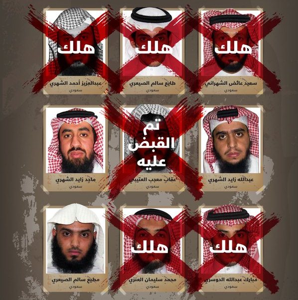 وفي طور متابعة الجهات الأمنية للإرهابيين تمكنت صباح أمس السبت من القضاء على اثنين من الإرهابيين كان أحدهما من ضمن الخلية وهو الهالك طايع سالم الصيعري والذي يعد الأخطر بعد زعيم الخلية سعيد الشهراني .
