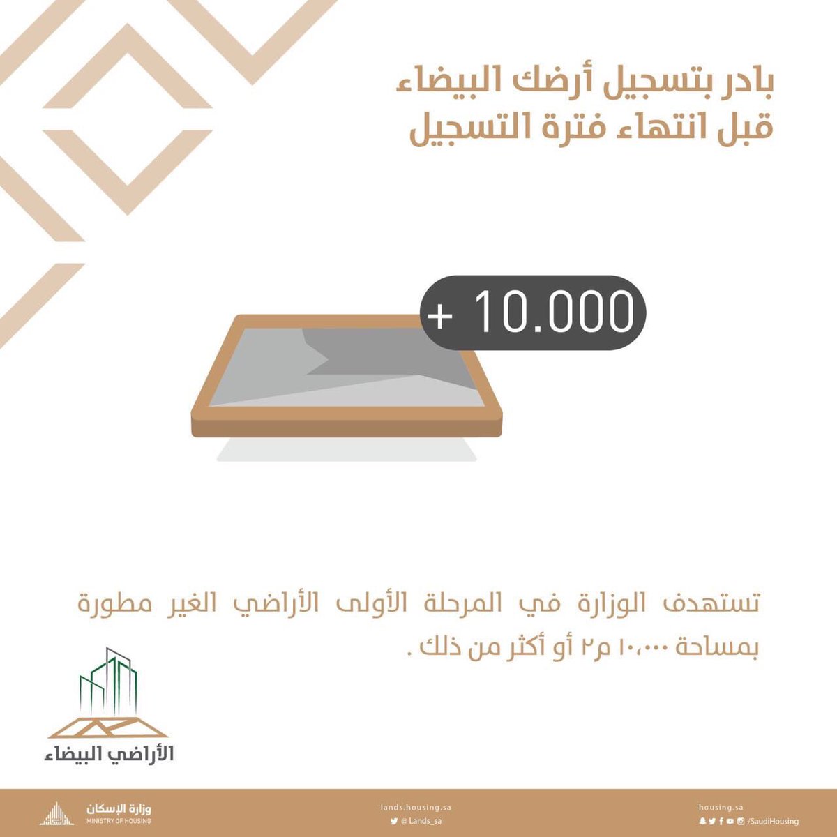 وقال حساب الأراضي البيضاء على موقع تويتر إنه “تفادياً لما يترتب على أخطاء التسجيل؛ ندعو مُلّاك الأراضي البيضاء بتصحيحها قبل 1438/05/10هـ.”