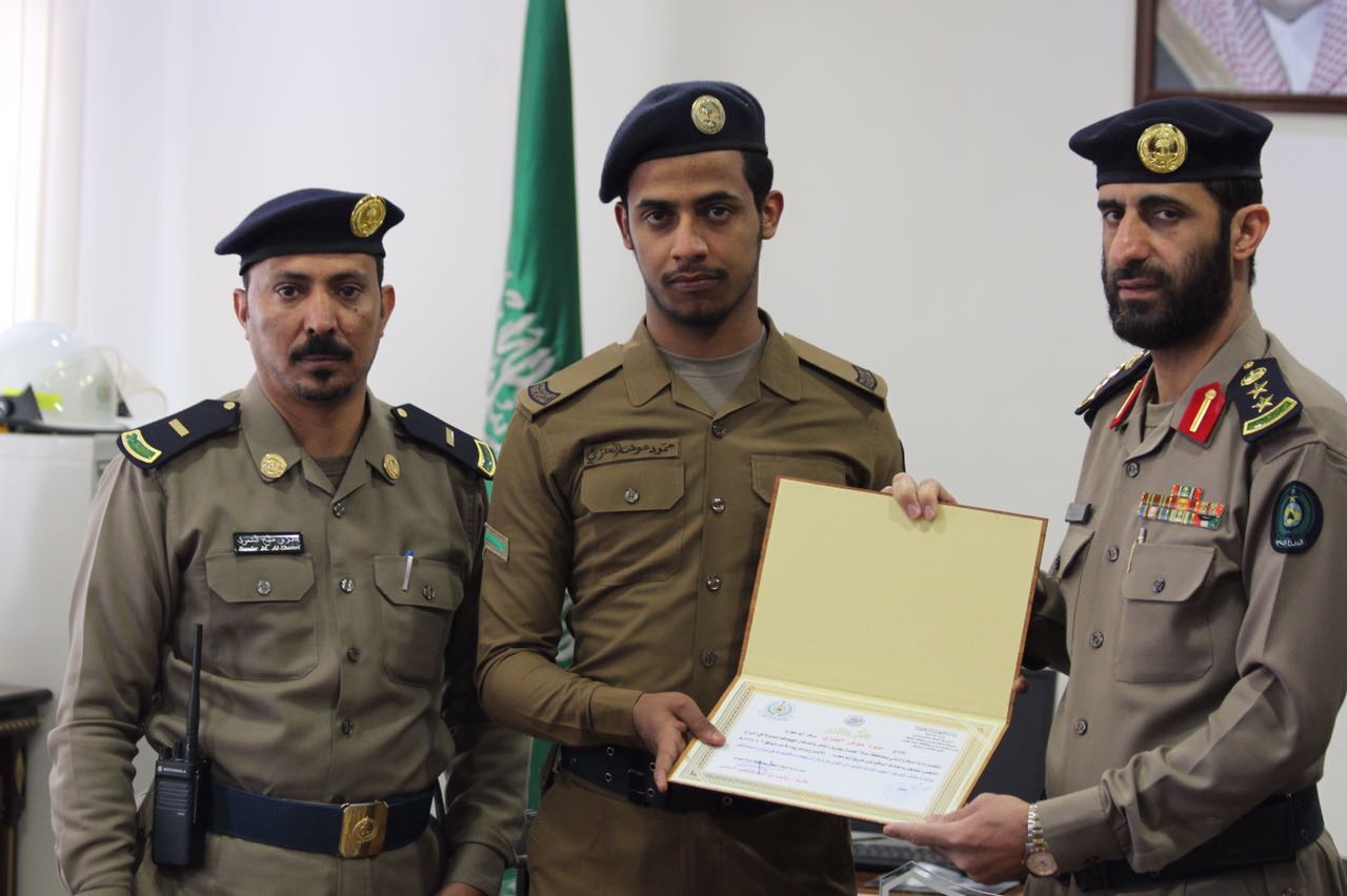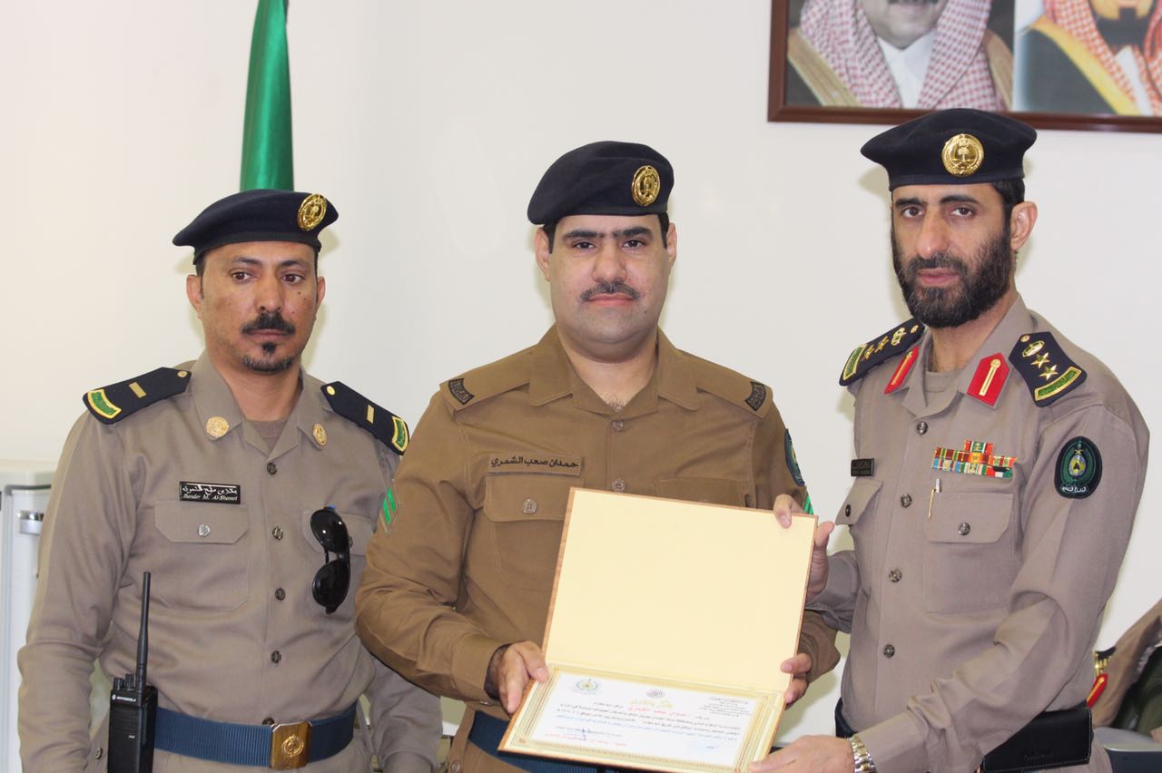 كما تم تكريم الجندي، حمود عوض العنزي على مجهوداته مع زملائه في حادث الاحتجاز واتقانه لعمله، سائلا الله العلي القدير لهم التوفيق وبذل المزيد من النجاح.