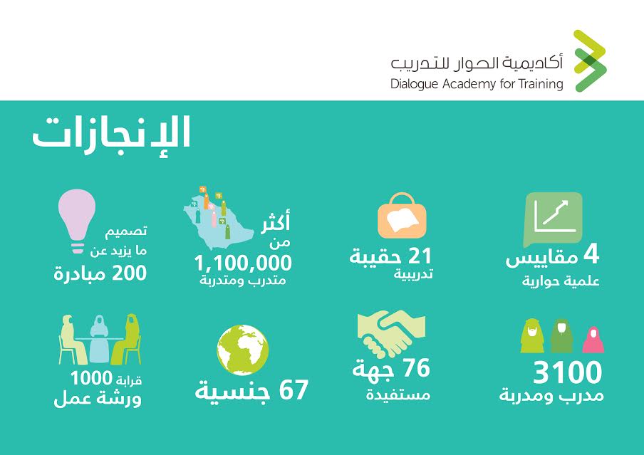 نظّمت أكاديمية الحوار للتدريب خلال العام الماضي 2016م نحو 53 برنامجًا تدريبيًا في مختلف مناطق المملكة، واستفاد منها نحو 1170 متدربًا ومتدربة، يمثلون مختلف القطاعات الحكومية والأهلية والخاصة، في مختلف مناطق المملكة.