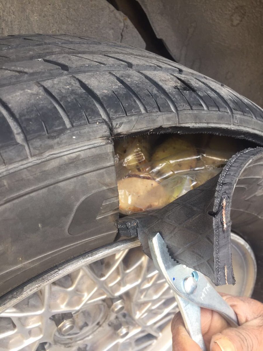 وتفصيلاً قال الأستاذ ضيف الله العتيبي مدير عام جمرك جسر الملك فهد المكلّف: قَدِمت للجمرك مركبة من نوع خصوصي وعند قيام المفتش الجمركي بالإجراءات الجمركية عُثر على تلك الكمية من الخمور مُخبأة داخل تجاويف إطارات المركبة الأربع التي تسير عليها وذلك بعد توزيعها بطريقة فنية داخل الإطارات.
