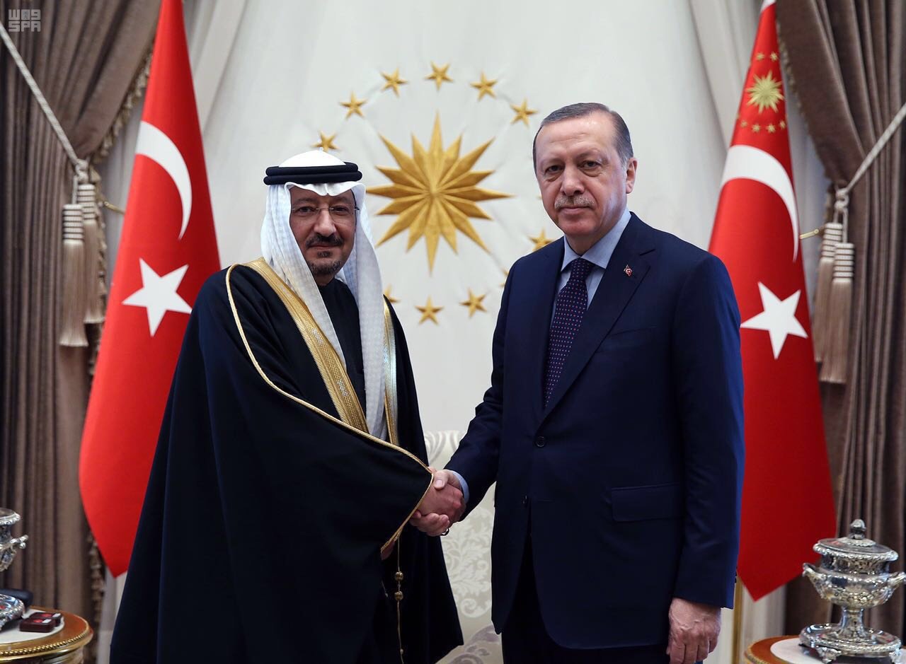 ونقل السفير الخريجي للرئيس التركي تحيات خادم الحرمين الشريفين، الملك سلمان بن عبد العزيز آل سعود، فيما حمّله تحياته وتقديره لخادم الحرمين الشريفين.