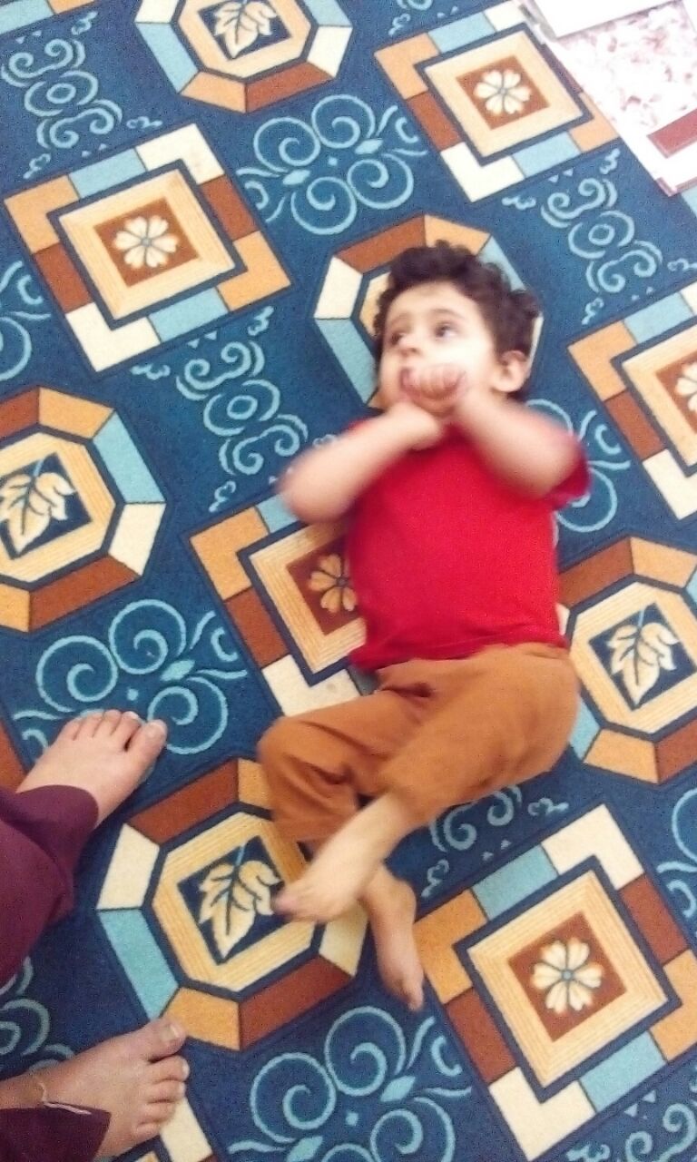 مشاعر الحسرة والألم سيطرت على والد طفل لم يتجاوز الـ 3 سنوات، حيث يرى ابنه كل يوم وحالته في تدهورٍ شديد، ولا يستطيع أن يقدم له أي شيء سوى الدعاء له ليل نهار، حيث فقد بصره بعد ولادته بـ 6 أشهر، وأصابه شلل في الدماغ، وأصبح غير قادر على الحركة.
