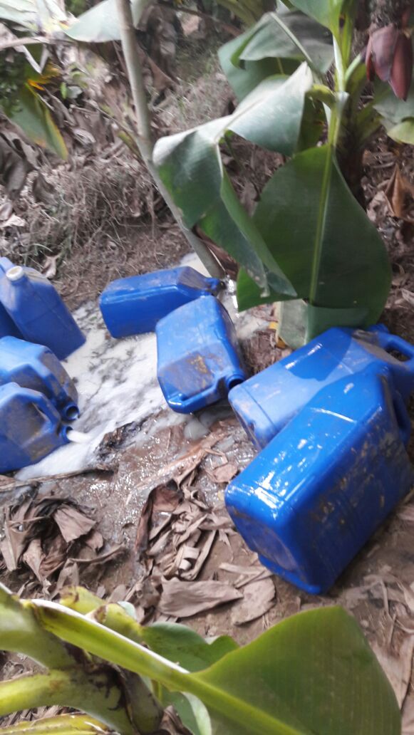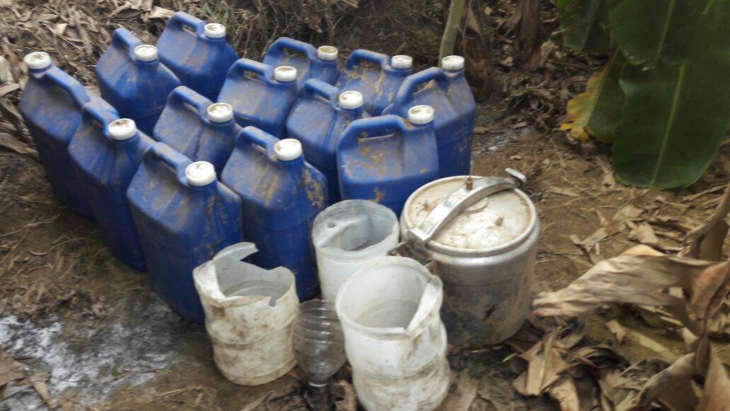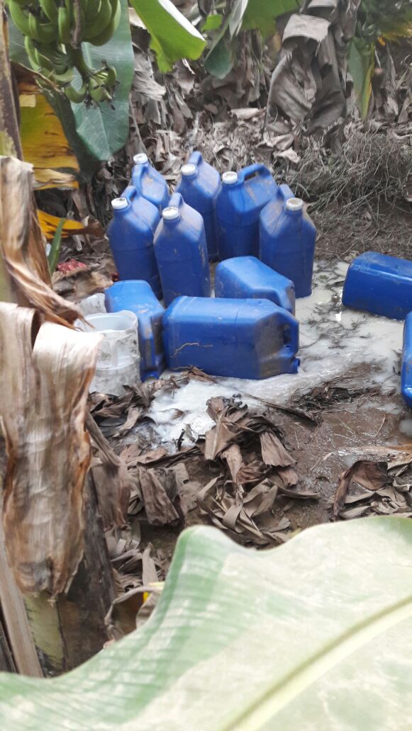 وفي العملية الثانية تمكن رجال اﻷمن بشرطة محافظة بيش من ضبط ثلاثة عشر جركلاً سعة 25 لتراً مليئة بمادة العرق المسكر مخبأة بين أشجار ومحاصيل الموز.