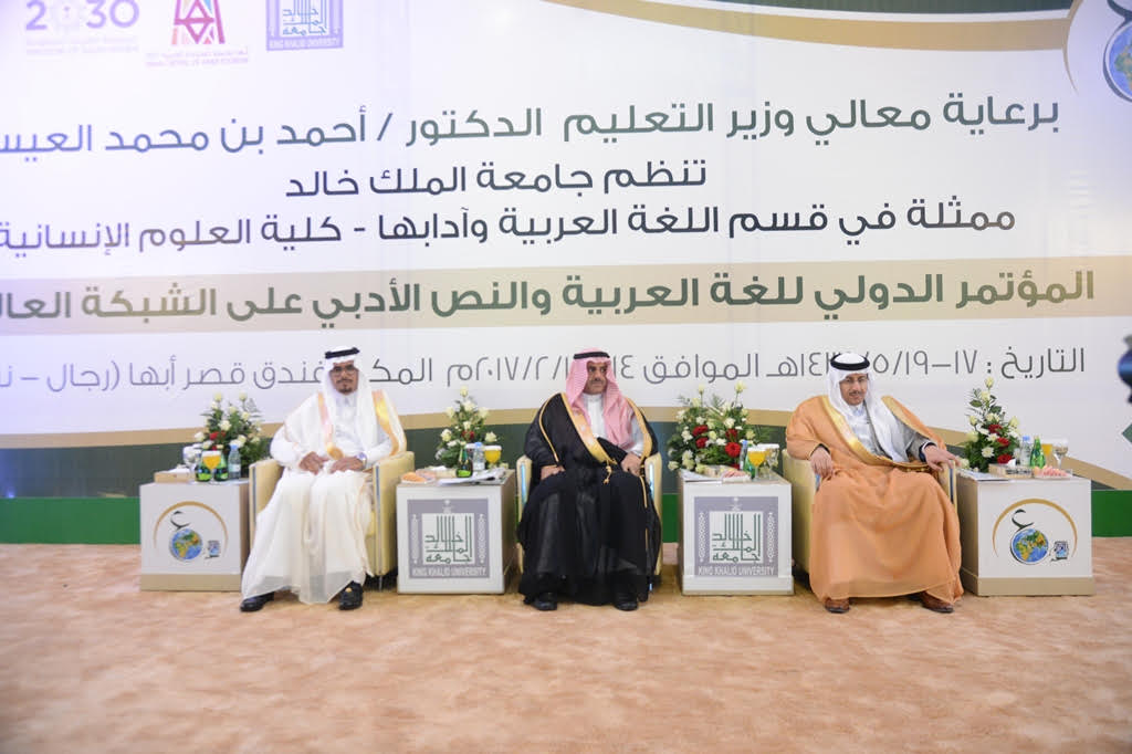 نيابة عن وزير التعليم الدكتور أحمد العيسى، رعى مدير جامعة الملك خالد الأستاذ الدكتور فالح بن رجاء الله السلمي، اليوم حفل افتتاح المؤتمر الدولي للغة العربية والنص الأدبي على الشبكة العالمية، والذي ينظمه قسم اللغة العربية وآدابها بكلية العلوم الإنسانية، خلال الفترة من 17 إلى 19 من الشهر الجاري، بفندق قصر أبها.