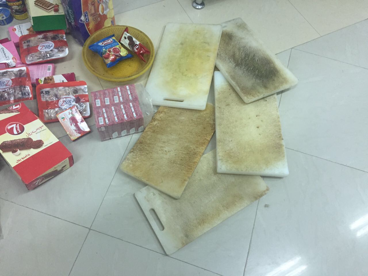 و أشار إلى أن المواد الغذائية الفاسدة المصادرة تقدر بحوالي ٦٥٥٦ جراماً وهي عبارة عن دجاج مجمد ومعلبات الخضار والجبن وأكياس البهارات والكيك والبسكويت منتهية الصلاحية .