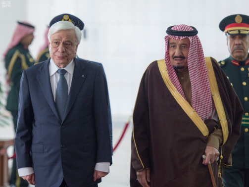 استقبل خادم الحرمين الشريفين الملك سلمان بن عبدالعزيز آل سعود في قصر اليمامة اليوم، الرئيس بروكوبيوس بافلوبولوس رئيس جمهورية اليونان.