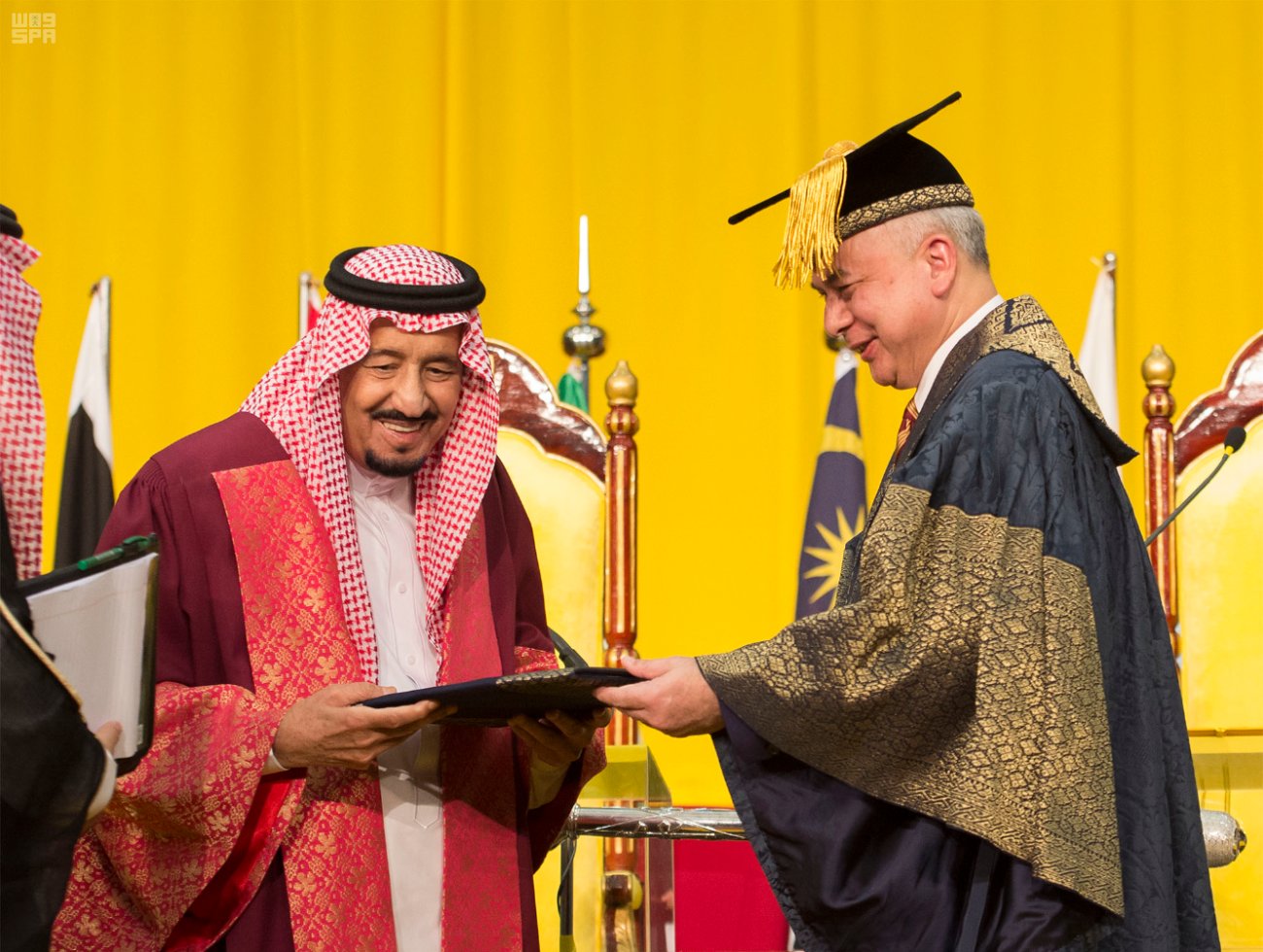 وكان خادم الحرمين الشريفين قد وصل إلى ماليزيا أمس في زيارة تستغرق أربعة أيام ضمن جولته الآسيوية الكبرى التي ستتضمن عدة دول من بينها الصين واليابان لتعزيز العلاقات الثنائية والتعاون المشترك.