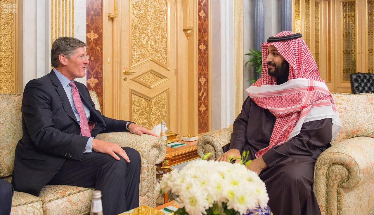 التقى صاحب السمو الملكي الأمير محمد بن سلمان بن عبدالعزيز ولي ولي العهد النائب الثاني لرئيس مجلس الوزراء وزير الدفاع في مكتبه بالرياض اليوم الرئيس التنفيذي لسيتي قروب السيد مايكل كوربات.