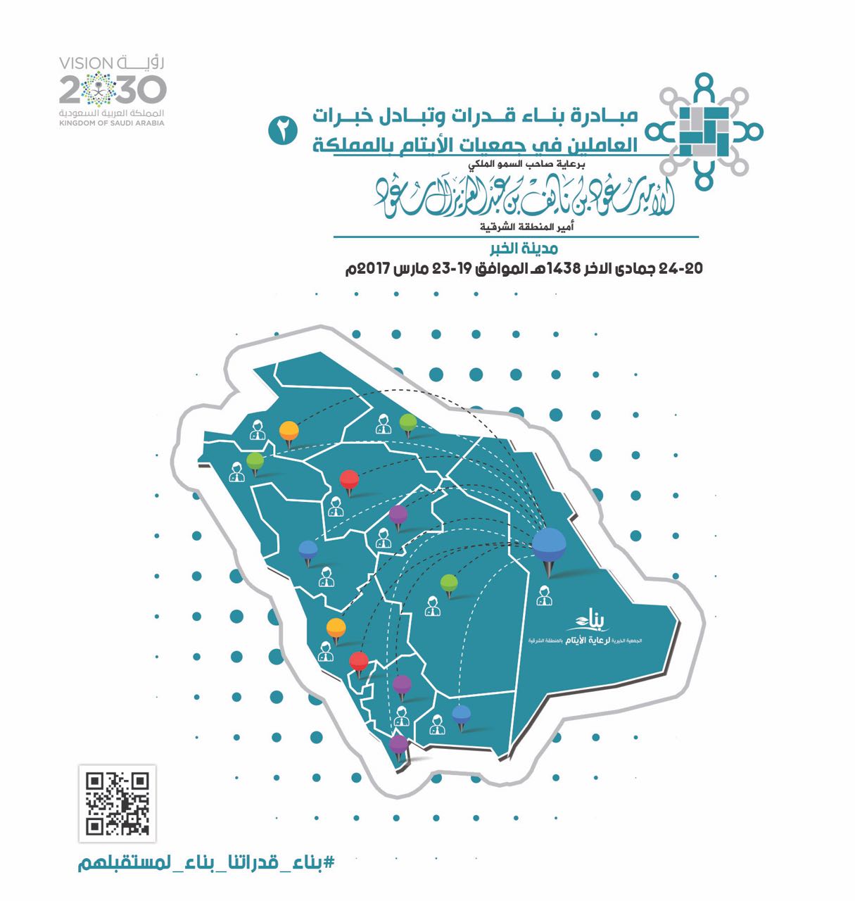 تنطلق صباح غدٍ الأحد مبادرة بناء “قدرات وتبادل خبرات العاملين في جمعيات الأيتام” بمشاركة 22 جمعية خيرية متخصصة في رعاية الايتام على مستوى المملكة، والتي تنظمها الجمعية الخيرية لرعاية الأيتام بالمنطقة الشرقية “بناء” للعام الثاني على التوالي بالخبر برعاية صاحب السمو الملكي الأمير سعود بن نايف بن عبدالعزيز أمير المنطقة الشرقية وحضور صاحب السمو الملكي الأمير تركي بن محمد بن فهد – رئيس مجلس إدارة جمعية بناء، وتستمر المبادرة لمدة 5 أيام .
