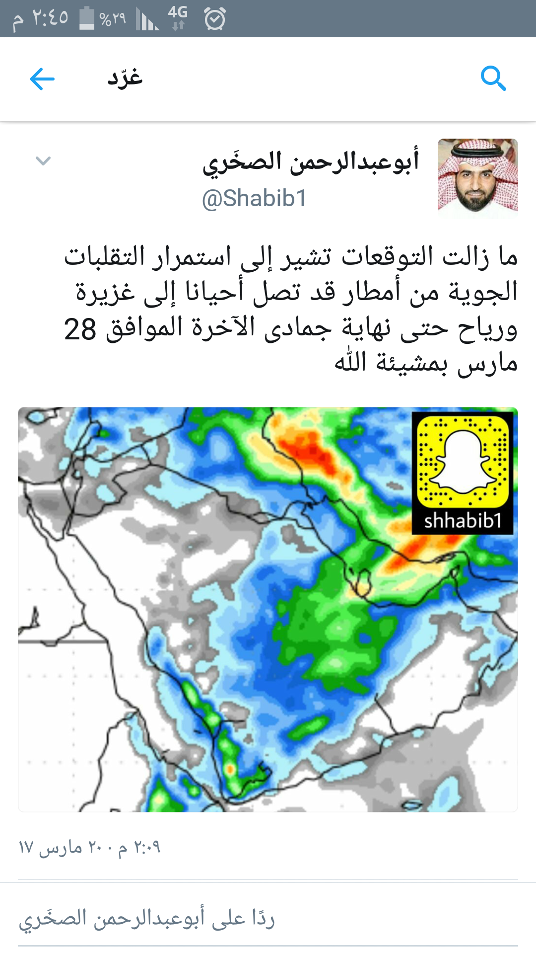 قال الباحث الفلكي شبيب الصخري إن عاصفة مدار لن تكون نهاية الظواهر الفلكية لشهر مارس، حيث أكد أن هناك عدة ظواهر جوية ما بين أمطار قد تصل للغزيرة ورياح سريعة.