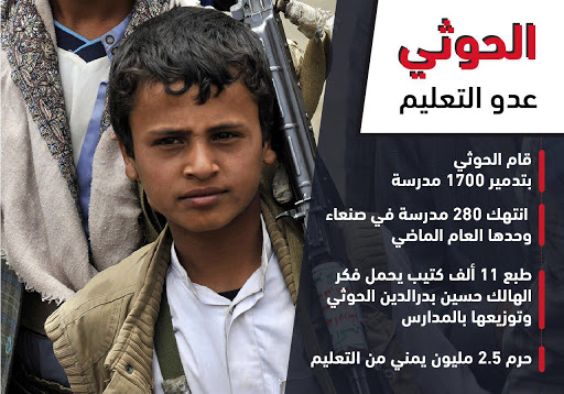 وحرم الحوثيون أكثر من مليونين ونصف المليون طالب من حقهم في التعليم بالقوة، إضافة إلى قصف المدارس أو مداهمتها وتحويلها لمقرات عسكرية للميليشيات، ومخازن للأسلحة، فضلاً عن تخوف أولياء أمور الطلاب من التعبئة الطائفية، التي يمارسها الحوثيون، لاسيما بعد تولي يحيى بدرالدين الحوثي شقيق زعيم الحوثيين وزارة التربية والتعليم في حكومة ما يسمى بالإنقاذ الوطني التي تم تشكيليها أخيرًا.