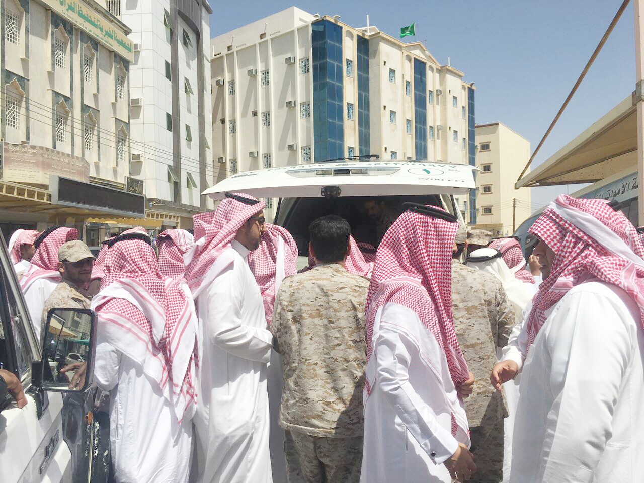 ووري جثمان الشيهد الثرى في مقبرة قبيلة “آل مدير”، مسقط رأسه في المحافظة، التي اكتضت بالمشيعين.