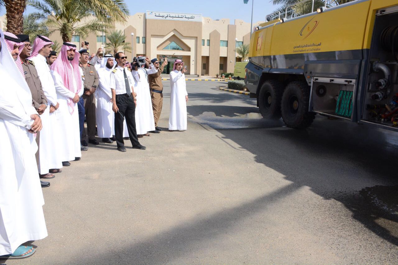 وتم افتتاح المعرض المقام بهذه المناسبة بمشاركة العديد من الجهات الحكومية والأهلية، والاستماع لشرح مفصل عن مكونات المعرض حيث اشتمل المعرض على أركان خاصة بالجهات المشاركة للتعريف بمعدات وأدوات الإطفاء و الإنقاذ و السلامة، بالإضافة إلى مشاركات طلاب المدارس والكلية التقنية وجامعة بيشة.