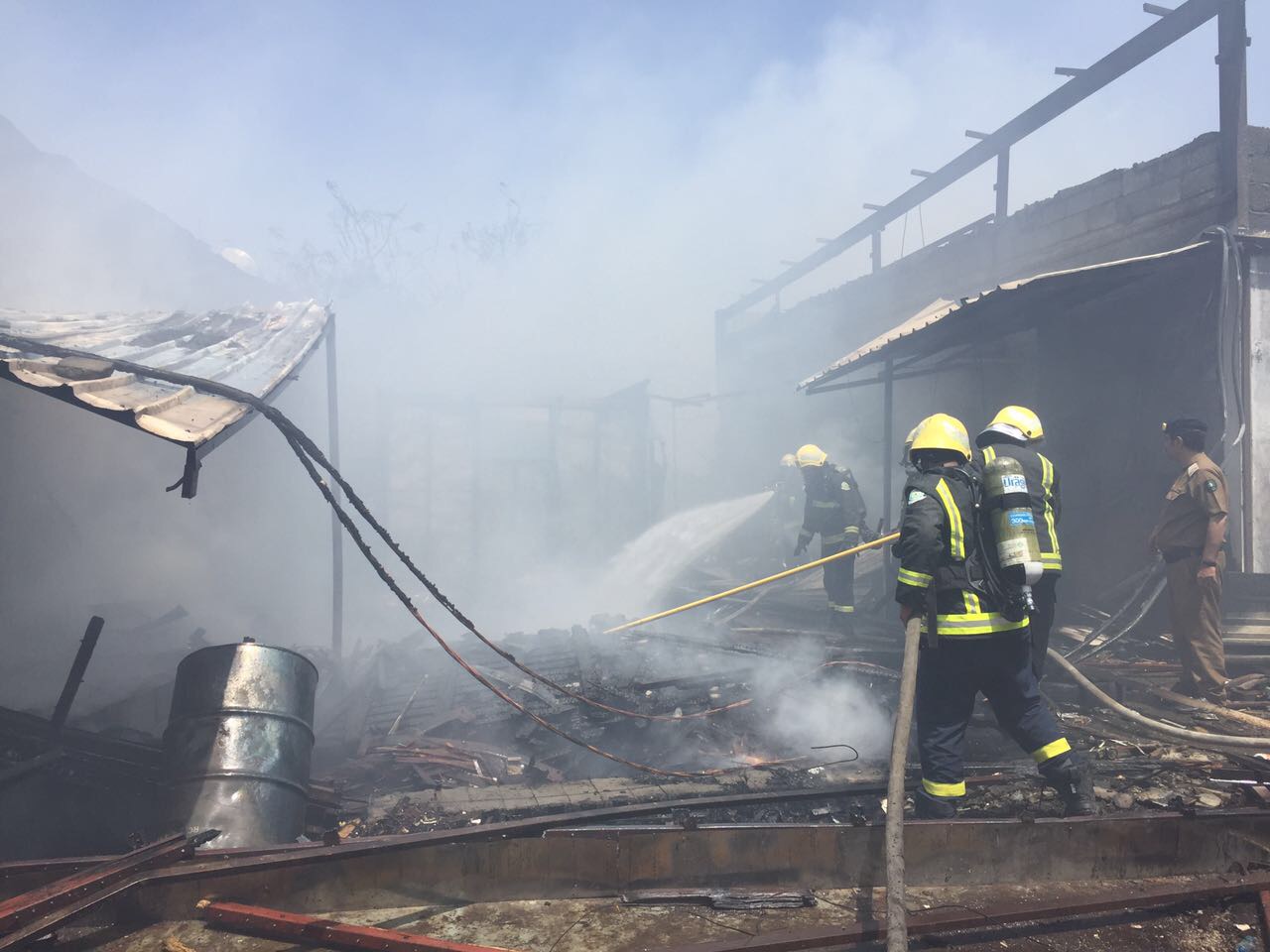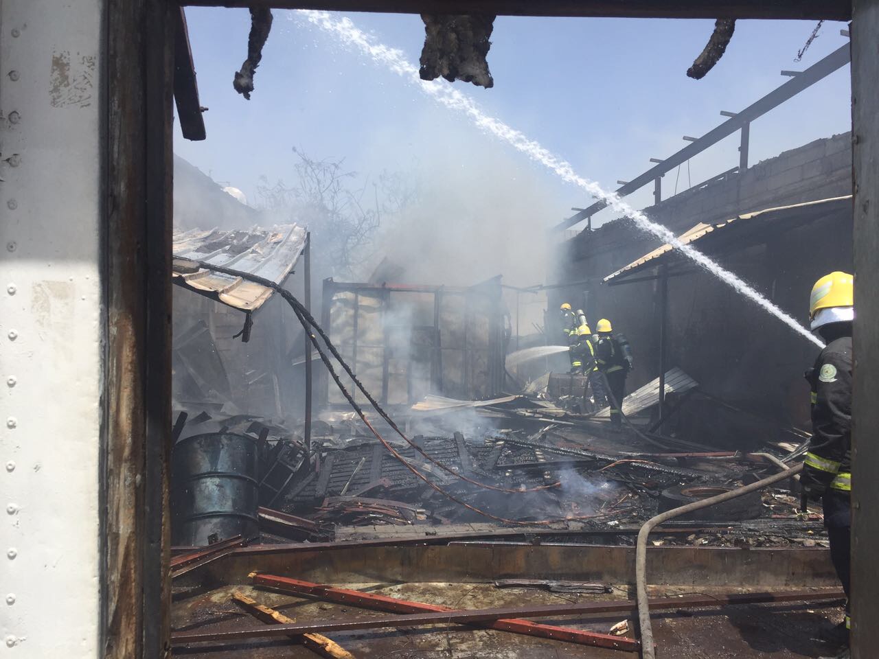 وتلقت العمليات بلاغاً قبل ظهر اليوم بنشوب الحريق، حيث هرعت الفرق لمباشرة الحالة التي تبين أنها عبارة عن حريق بعدد [3] من المحال التجارية تقدر المساحة الإجمالية للموقع بـ 2000 م2، ومساحة الحريق 200 م2 وبذلت جهوداً لمحاصرة الحريق واحتواء عدم انتشاره والقيام بعمليات التبريد.