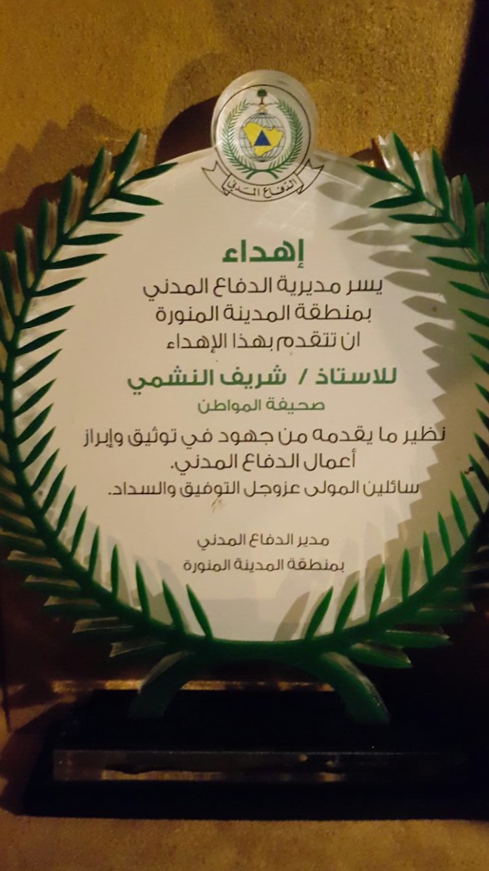 وتم تكريم صحيفة “المواطن” الإلكترونية على ما تقدمه من جهود في توثيق وإبراز أعمال الدفاع المدني .