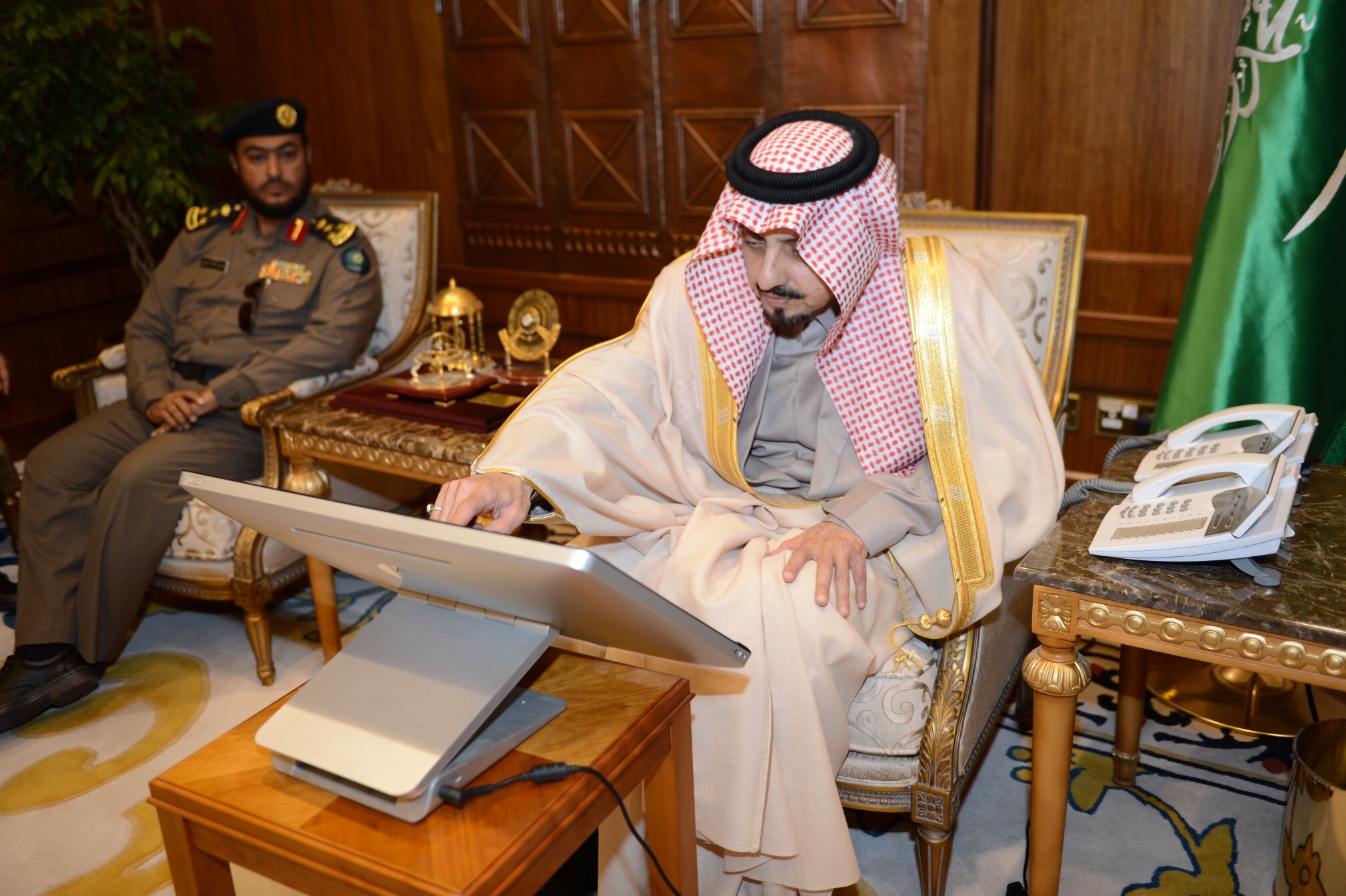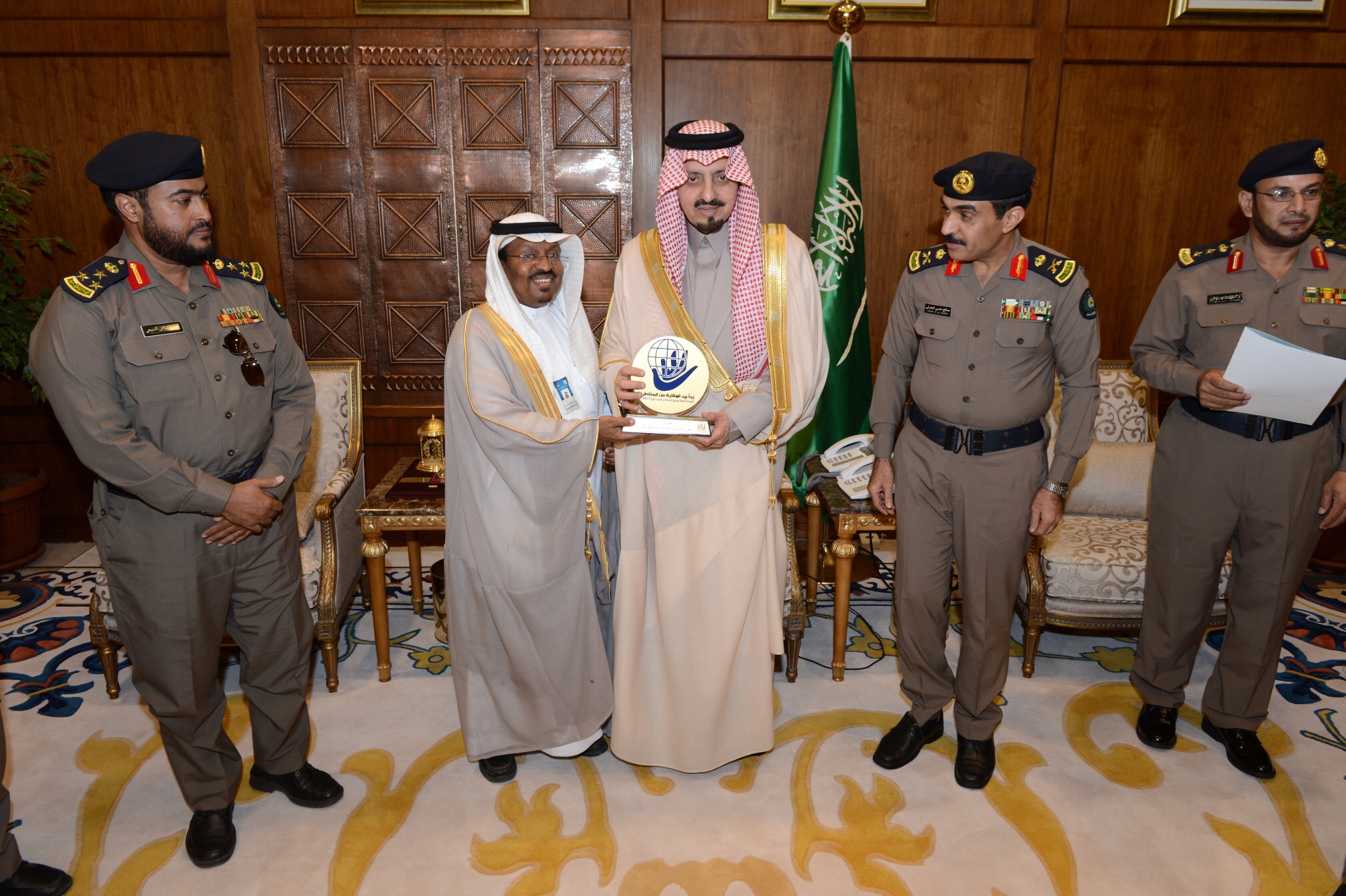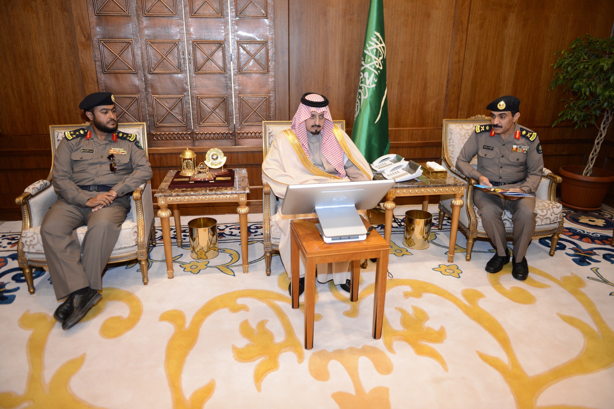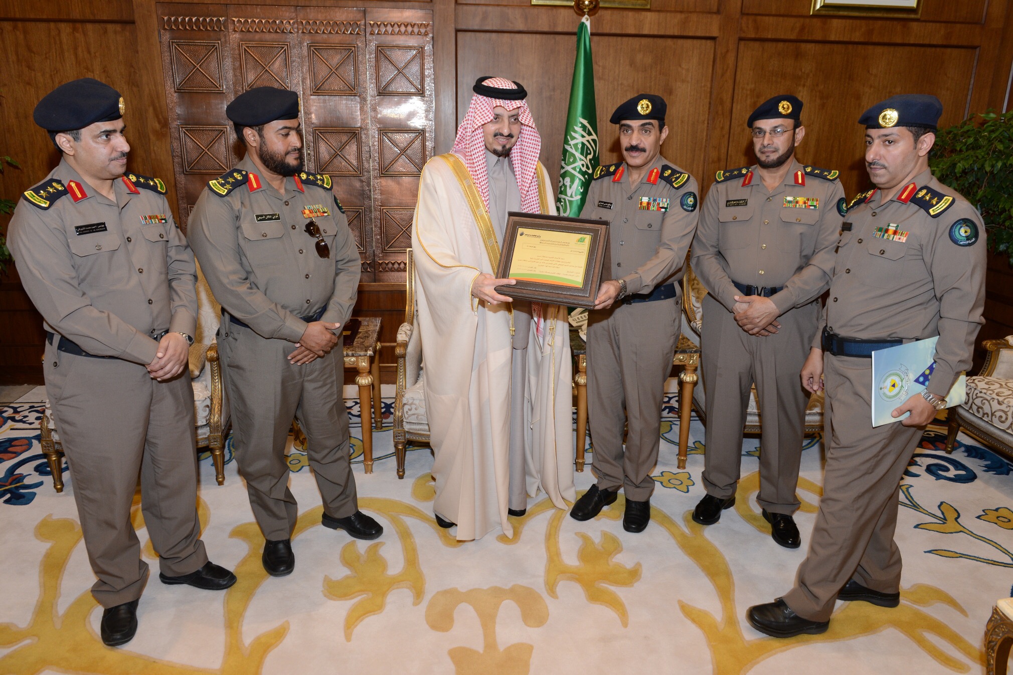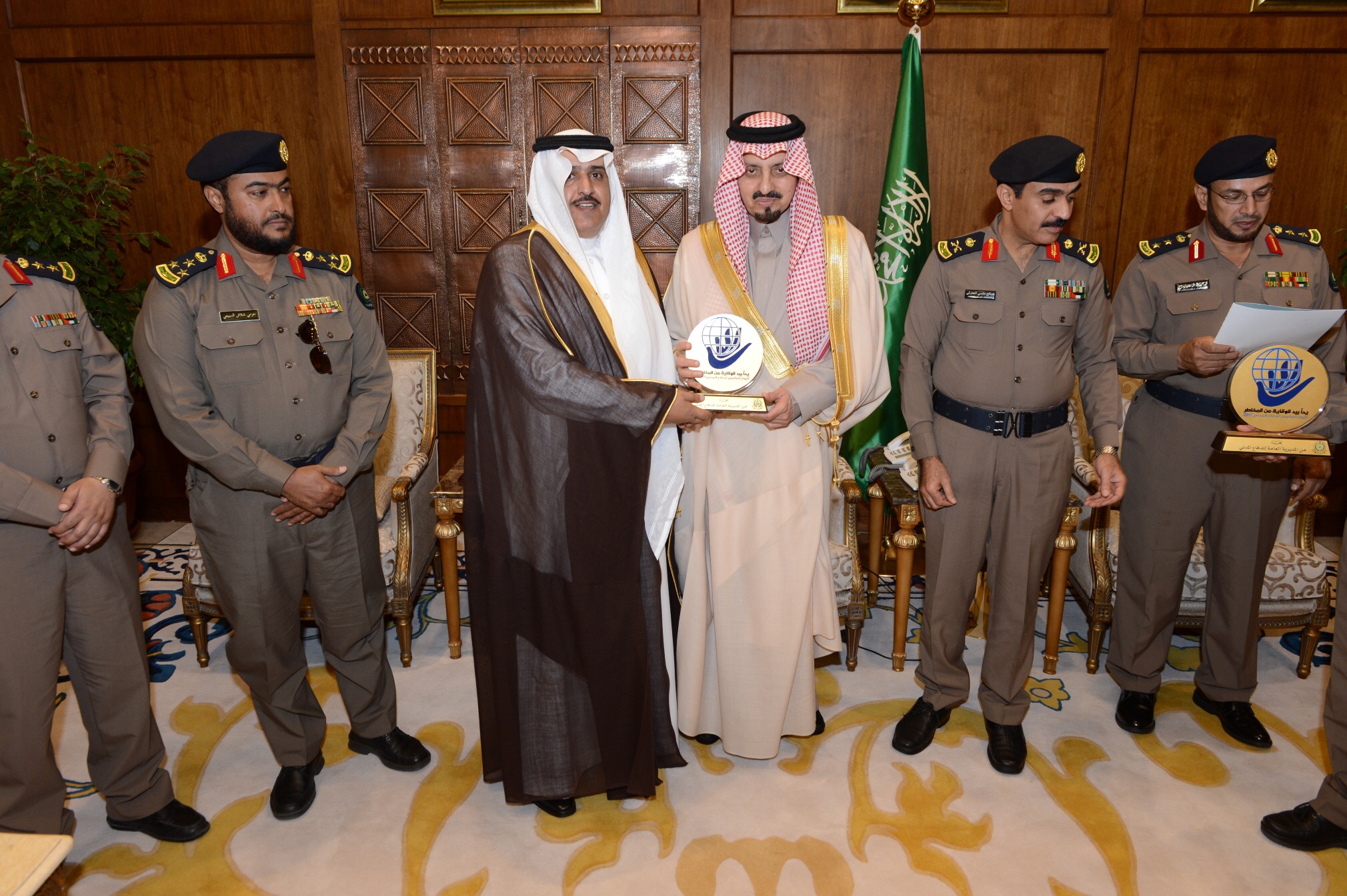 وخلال الاستقبال، تسلم سموه تقريرا عن الأعمال الميدانية التي قام بها الدفاع المدني بالمنطقة لمواجهة المخاطر المصاحبة لهطول الأمطار وجريان السيول بالمنطقة خلال الفترة الماضية.