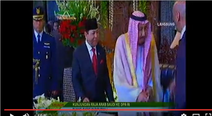 وصل خادم الحرمين الشريفين الملك سلمان بن عبدالعزيز آل سعود إلى مقر مجلس النواب الإندونيسي لإلقاء كلمة إلى الأمة الإسلامية.