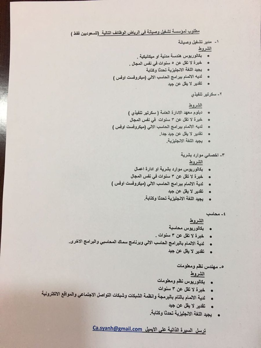 وأبرزت أنَّ المناصب الشاغرة وفق المسميات والشروط التالية: