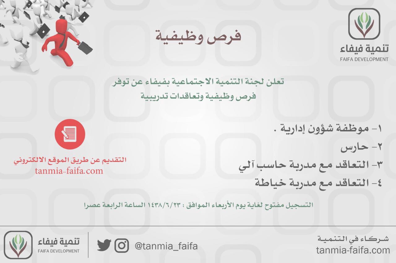 #وظائف شاغرة للجنسين بلجنة تنمية #فيفاء